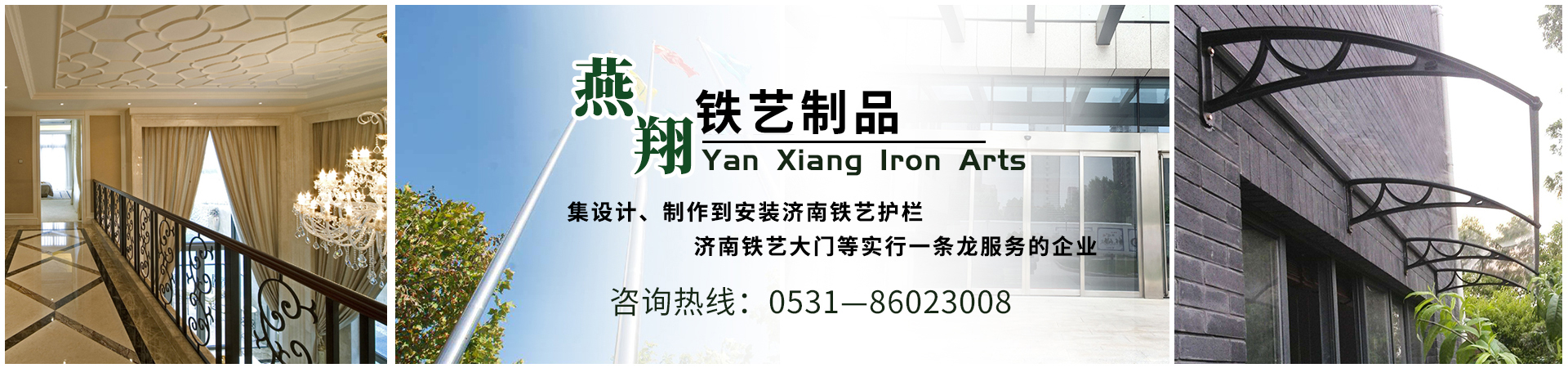 濟南燕翔鐵藝制品有限公司是一家集設計、制作到安裝濟南鐵藝護欄,濟南鐵藝大門等實行一條龍服務的企業,具有高標準、高科技的管理模式,并有著多年的設計、生產、制作經驗,工藝精湛。企業生產安裝各種不銹鋼系列產品:鐵藝樓梯、鐵藝護欄、鐵藝大門、鐵藝護窗、鋼梁雨篷、地下車庫雨篷、各式汽車自行車雨篷、鋼結構工程、玻璃門、感應門、幕墻等工程。制作各類不銹鋼異形、不銹鋼扶手、護欄、不銹鋼防盜門、...